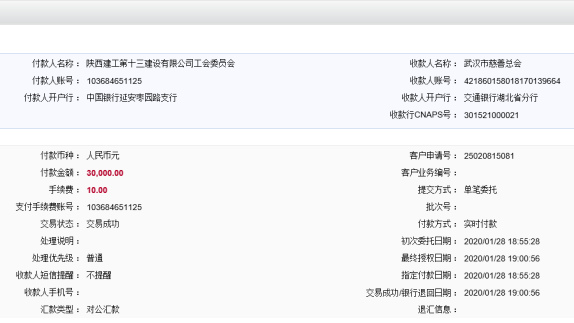 面對新型冠狀病毒肺炎疫情防控的嚴(yán)峻形勢,公司第一時間發(fā)出了“愛心捐款倡議書”,立即得到了全體干部職工的積極響應(yīng)。十三建公司全體黨員以及廣大職工發(fā)揮模范帶頭作用,集十三建人力量,匯廣大職工愛心,在短短一天時間內(nèi),自發(fā)捐款合計三萬元,最終通過公司統(tǒng)一轉(zhuǎn)往武漢市慈善總會,助力打贏疫情防控阻擊戰(zhàn),用實際行動支援湖北,向偉大祖國表白!