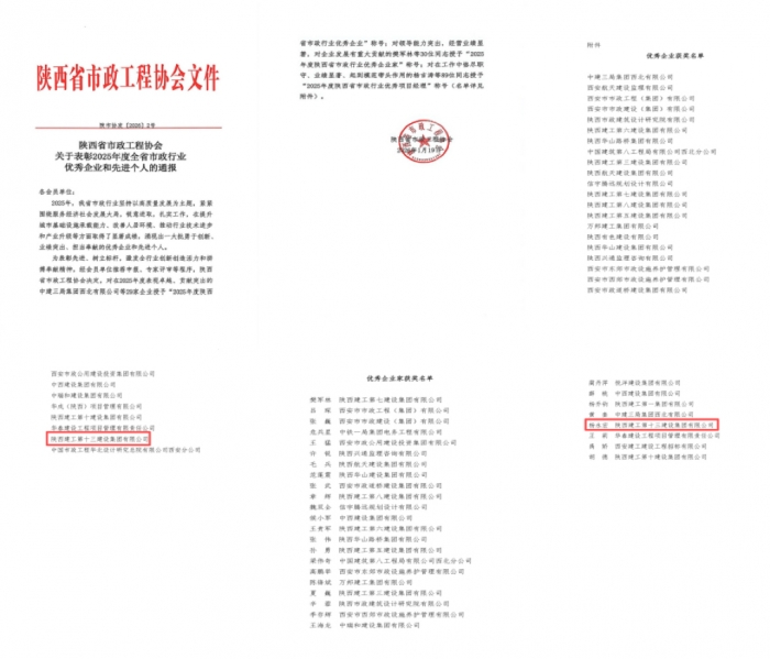 1月19日,集團獲評2025年度陜西省市政行業(yè)優(yōu)秀企業(yè)。